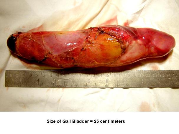 | Gall Bladder after surgery Its size is equal to almost whole of abdomen |