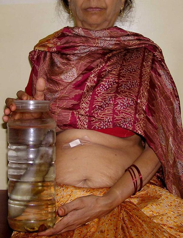 | Patient with Gall Bladder and Stones in a Jar after discharge from hospital |